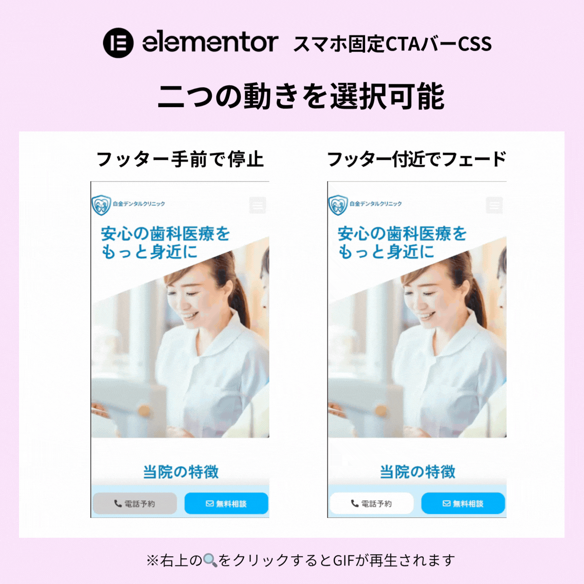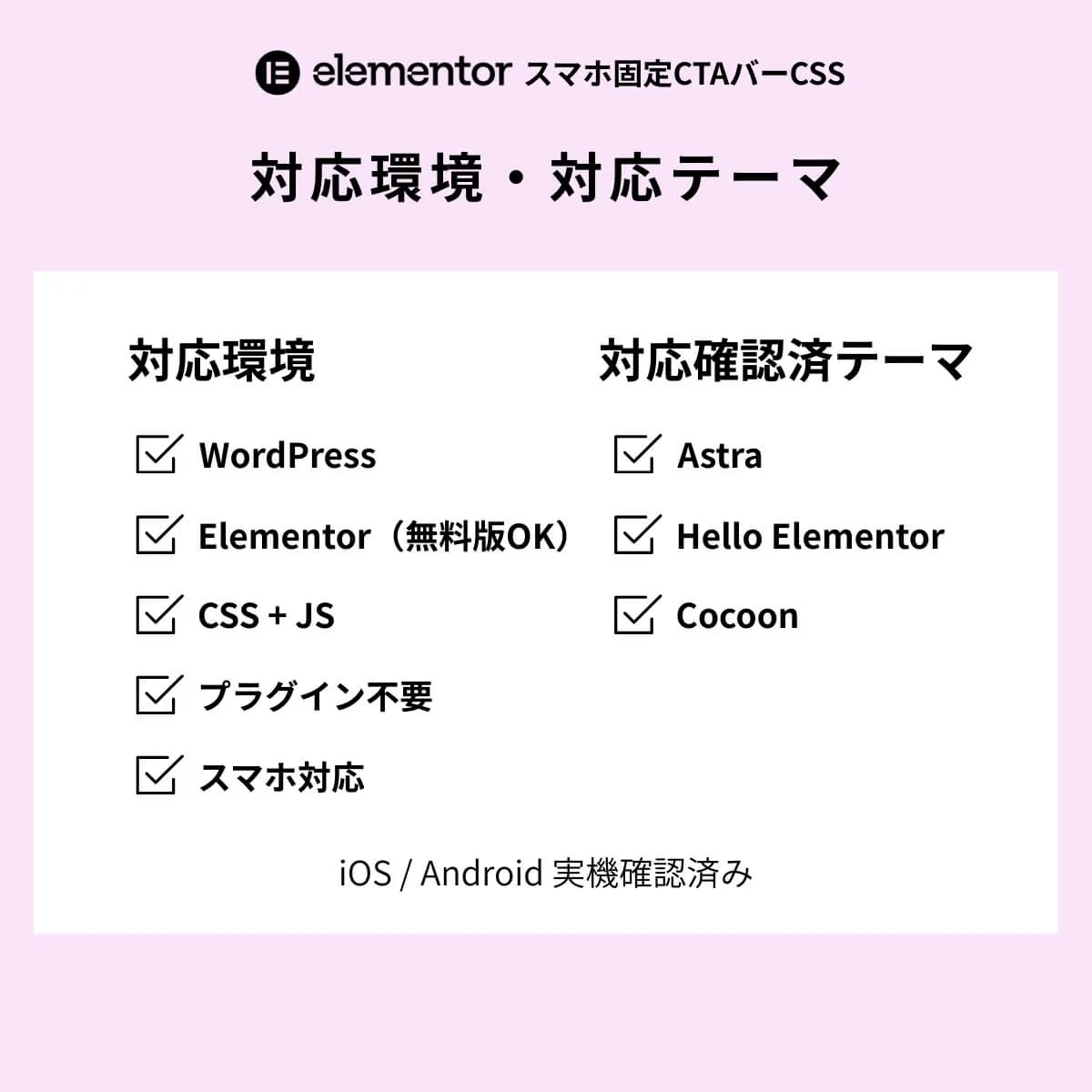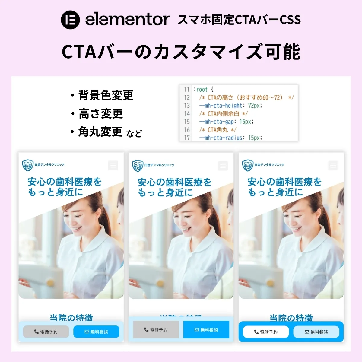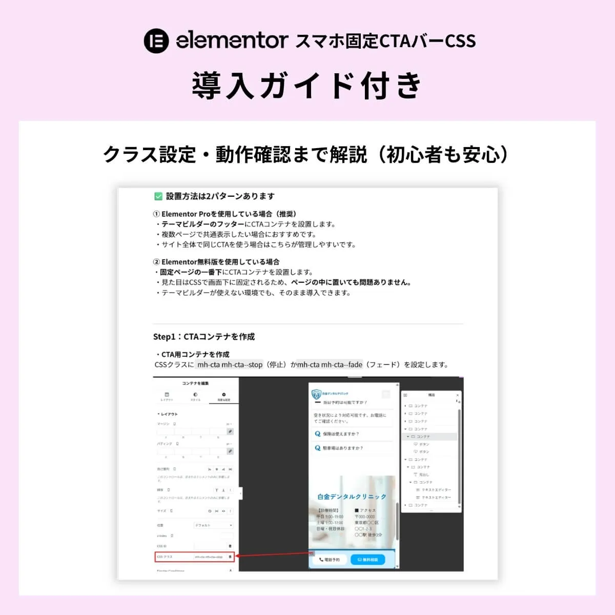 このテンプレートでは、Elementorサイトにスマホ固定CTAバーを簡単に導入でき、